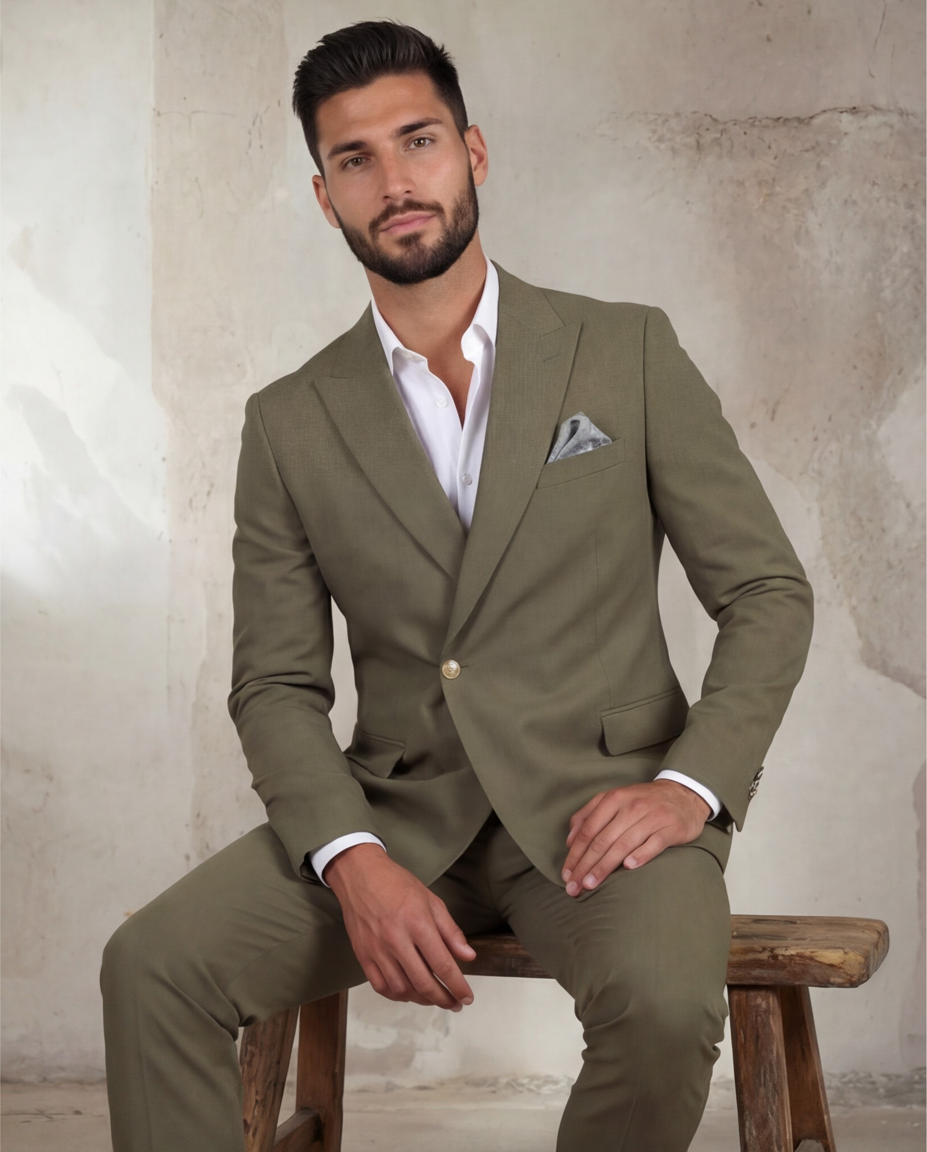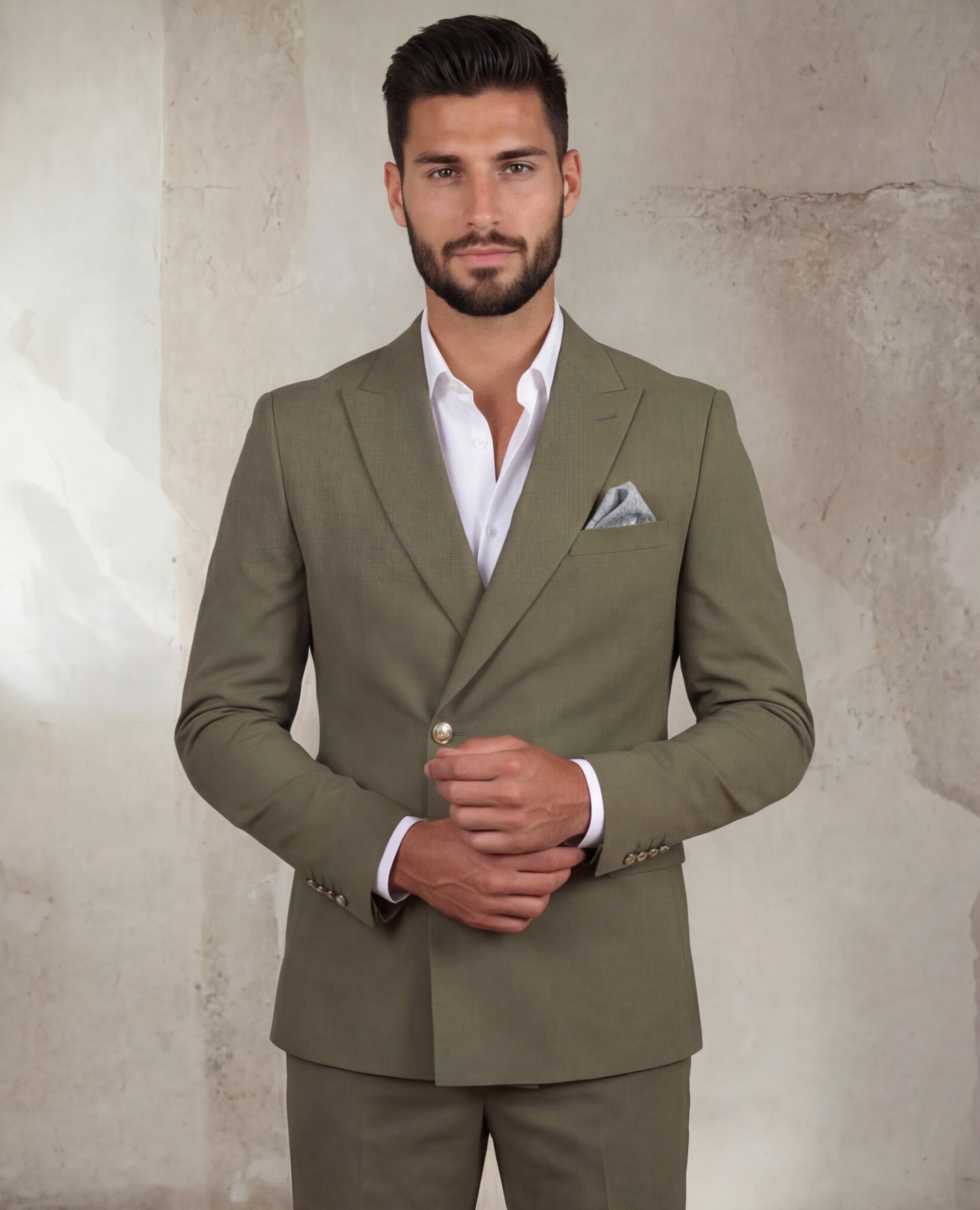 חליפה ירוקה עם כפתור זהב