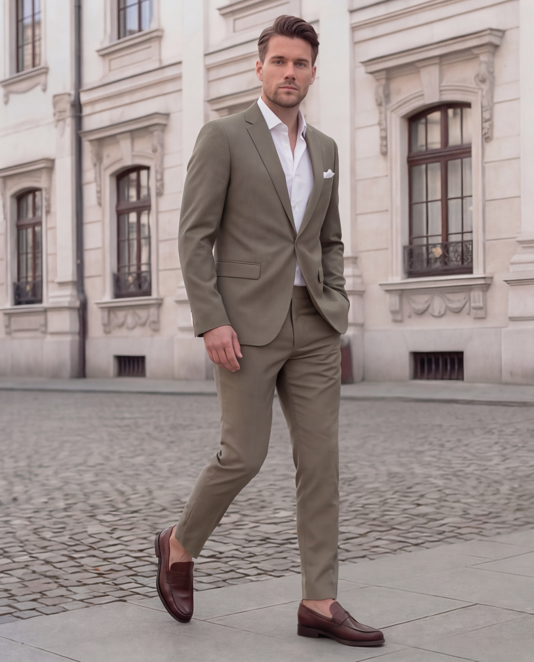 הגוון הירוק מוסיף עומק ועניין ללוק, ומשלב בין סטייל עדכני לבין אופי ייחודי שקשה להתעלם ממנו. החליפה מתאימה למי שמחפש לבלוט בצורה עדינה אך בטוחה, עם טוויסט שונה מהקלאסיקה הרגילה.